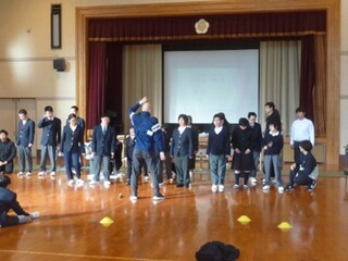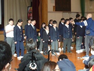 1年生の「おお牧場はみどり」では、会場のみんなにも左右の肩を交互に8・4・2・1の拍子打ちを一緒にしてもらい、最後は「ホイ!」の掛け声でポーズをとって盛り上がりました。
