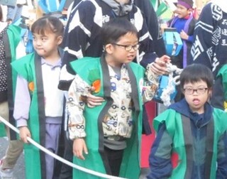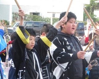 かっこよく練り歩きました 6年生おはやし隊