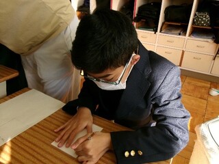公開日 2025年12月24日 中学部3年生 12月「国語・数学~年賀状を書こう~」 「年賀状を書こう!」では、新年のあいさつや来年の干支を学びながら、お世話になった先生方に年賀状を書きました。生徒たちは、書き方や言葉遣いを確認しながら『あけましておめでとうございます』という言葉を丁寧に書くことができました。来年の干支である「馬」を描いたり、イラストで飾り付けをしたりして、個性あふれる年賀状に仕上げました。活動を通して、手紙文化や新年の挨拶の大切さを学ぶことができました。