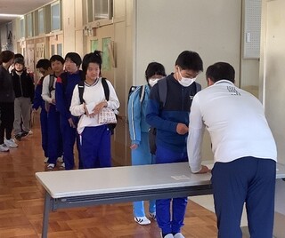 公開日 2025年12月24日 中学部3年 総合的な学習の時間 「~高等部入学選考に向けて~」 1月の高等部入学選考に向けて、面接練習や学力調査の学習を頑張っています。 高等部に合格するため、面接では、①身だしなみ ②姿勢 ③止まって話す ④はっきり話す、自分なりの方法で伝える ⑤言葉遣い「~です。~ます。」を使う ⑥分からないときは「分かりません。」と言う などのポイントに気を付けながら行っています。3年生全員が、高等部に合格できるよう頑張ります!!