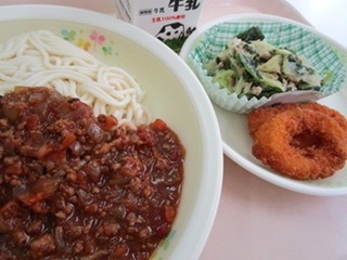 野菜をたっぷり入れたミートソースです。どの学級も人気でした♪