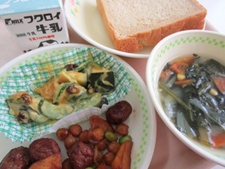 黒糖入りパン 牛乳 肉団子とじゃがいものケチャップあえ
