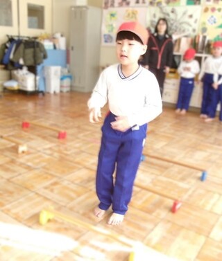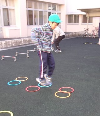 公開日 2026年02月06日 小学部1年 2月 体育『じゃんぷ!じゃんぷ!じゃんぷ!』 体育では、ミニハードルをまたいだり跳び越したりする活動や、台から跳び降りる活動をしています。 「足にのりを付けて。ぺったん。」という言葉を聞いたり、手本を見たりして足をそろえて跳ぶことに取り組んでいます。続けていく中で、またいだり跳んだりすることができるようになってきました。 いろいろな体の使い方を経験し、体を動かす楽しさを味わいながら、体をなめらかに動かせるようになっていくことをねらっていきます。