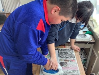 公開日 2026年02月18日 小学部6年 2月 生活単元学習 「ありがとう大作戦」 いよいよ卒業まであと1ヶ月になりました。「ありがとう大作戦」ではこれまでの感謝の気持ちを込めて卒業制作に取り組みました。「あいさつ運動で使ってきた『たすき』が古くなったので、新しいものを在校生に残したい!」という声が上がり、6年生みんなで、アイロンや、ステンシル、ミシン、型抜きなど様々な工程をみんなで分担して、たすきと感謝状を作りました。3月の6年生を送る会で感謝の気持ちを込めてプレゼントする予定です。