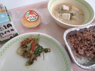 公開日 2026年02月20日 2月20日(金)ふじっぴー給食 かつおのそぼろごはん 牛乳 静岡レタスのシャキシャキサラダ 静岡野菜みそ豆乳汁 静岡県産みかんのタルト 静岡県産の食材をたっぷり使った給食です♪