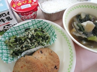ごはん 牛乳 がんもどきの煮物 じゃこと小松菜の炒め物