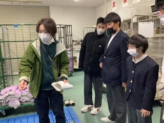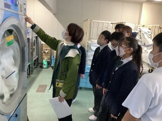 公開日 2026年02月26日 中学部2年 2月 総合「仕事を知ろう!見よう!体験しよう!」 3学期の総合的な学習の時間に、チャレンジ工房へ見学に行きました。ベットシーツやホテルの館内着に汚れがないかを点検したり、丁寧に畳んだりするなど、利用者の方々が黙々と働く姿を見学することができました。 事業所の見学や授業での仕事体験をとおして、仕事の楽しさや大変さに触れ、「働く」ということについてイメージを持つことができました。