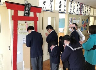 2月6日(金)に高等部入学者選考が行われました。前日には、3年生の教室前に作られた「合格神社」にお参りをしました。当日はこれまで学習した成果や、高等部進学に向けて、自分の力を発揮することができたようです。