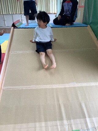 公開日 2026年04月24日 小学部1年 4月 生活単元学習 入学してから1か月が経ち、新しい環境にも少しずつ慣れてきました。 生活単元学習「みんなであそぼう!プレイルーム」では、プレイルームに設置された遊具で遊びながら学習をしてきました。滑り台やぶらんこ、積み木のようなクッションなど様々な遊具がある中で、自分の好きな遊具を見つけて楽しそうに遊ぶ姿が見られるようになりました。