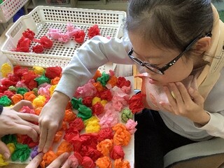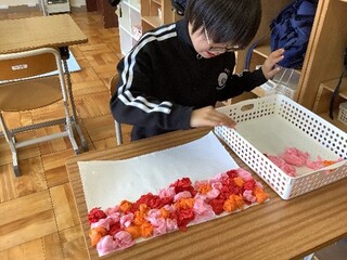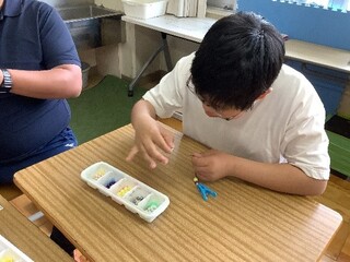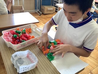 生活単元学習では、5月1日に行われる対面式に向けての学習を行っています。3年生が新リーダーとなり、2年生と力を合わせて「1年生に、中学部のことを知ってもらいたい!楽しんでもらいたい!」という思いで対面式の企画・準備をしています。3年生は、①司会進行や作業紹介をするグループ、②1年生へのプレゼントや会場の装飾作りをするグループ、③ダンスやボディパーカッションなどの出し物で盛り上げるグループに分かれて行っています。各グループの準備も着々と進んでおり、当日が楽しみになってきました。
