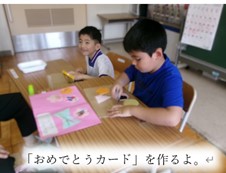 1年生に会いに行って名前を覚え、1年生が喜ぶようにと、プレゼントの「おめでとうカード」を作りました。