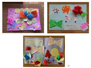 「1年生おめでとうの会」では、『ドキドキドン1年生』の曲に合わせてパラバルーンを披露したり、完成した「おめでとうカード」をプレゼントしたりすることができました。