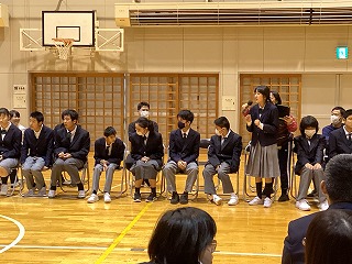 公開日 2025年05月27日 4月23日(水)生徒会役員を中心に「対面式」が行われました。 式の中では、1年生一人一人が自己紹介を行い、好きなことや得意なことを通して、自分らしさを元気にアピールしていました。 2・3年生からは、日ごろ取り組んでいる作業学習の紹介があり、実際の製品や活動の様子を通して各作業課の魅力が伝えられました。さらに、歓迎の気持ちを込めて心温まる歌のプレゼントもあり、会場には笑顔と拍手が溢れました。