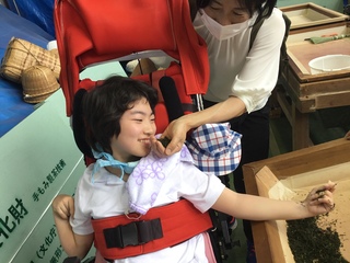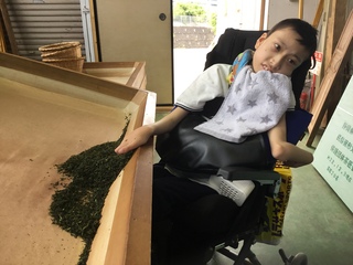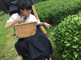 6月13日(金)生活単元学習「御殿場のお茶を知ろう」の学習で、御殿場市にある勝又製茶さんへ校外学習に行ってきました。これまでの授業で御殿場市の特産品がお茶であることを学習し、茶摘みや手もみの体験をとても楽しみにしていました。勝又製茶の社長さんが丁寧に茶摘みのやり方や手もみの説明をしてくださいました。生徒達は茶畑で茶摘みを体験したり、手もみをしながら茶葉のほのかに甘い香りや、感触等を感じたりしました。学校に戻ってから、自分達でもんだお茶を淹れていただきました。自分達でもんだお茶の味は格別で、御殿場の良さを再確認した校外学習となりました。