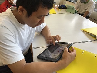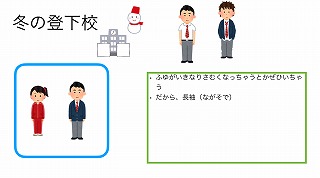 生徒たちは、keynoteアプリに用意されたイラストの中から、TPOに合った服装を選び、画面上で操作しました。また、選んだ理由については、ローマ字入力や音声入力など、自分に合った方法で工夫しながら取り組んでいました。