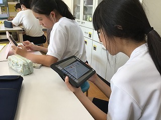 家庭の授業「生活を豊かにしょう」では、iPadを活用してTPO(時・場所・場合)に合った服装について考えました。