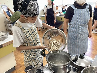 これまで調べてきた学習をもとに、調理を行い、麺の太さ・手触り・伸び加減・味の違いに注目しながら違いをまとめました。