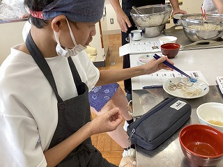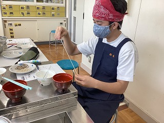 はじめて口にする地域の麺に新鮮な驚きを感じつつも、生徒たちは真剣な表情で食感や味の違いに注目していました。