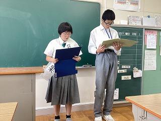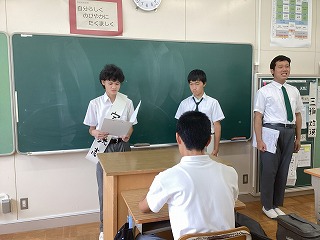 9月24日(水)の後期生徒会役員選挙に向けて、立候補者と応援演説を務める生徒が各教室を回り、演説を行いました。