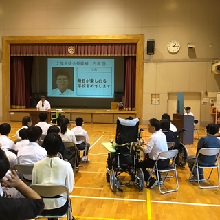 9月24日(水)に令和7年度 後期生徒会役員演説会・生徒会役員選挙が行われました。立候補者は1週間前から各学年を周り、選挙運動を行っていましたが、この日は高等部全員の前で演説を行いました。立候補した生徒は、緊張しながらも自分の思いや公約を演説で発表し、全校の生徒が真剣に耳を傾けました。