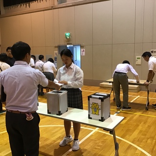 投票は選挙管理委員会が受付などの運営に携わり、実際の選挙に近い形式で行い、生徒一人ひとりが責任をもって投票用紙を記入しました。選挙を通して、自治活動の大切さや仲間を思いやる気持ちを学ぶ貴重な機会となりました。