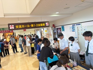 有志で高等部の生徒が販売に参加し、自分たちが作っている作業製品の販売を行いました。お客様が製品を手に取ると「角の丸みにこだわっています。」「細かいところまでこだわっています。」と製品のアピールをしながら一所懸命販売をしました。お客様からは、「すでに自宅で使用している製品があるよ。」といった嬉しいお声をいただき、地域の方々と御殿場特別支援学校のつながりを改めて感じることができました。