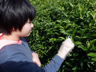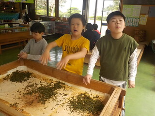 お茶会館ではお茶を摘んだり茶揉みの体験をしました。