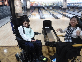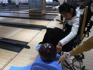 本物のボウリング場での投球は難しかったですが、初めてスペアを取ることができ、友逹逹教師と一緒に楽しむことができました。