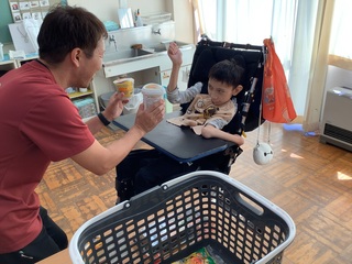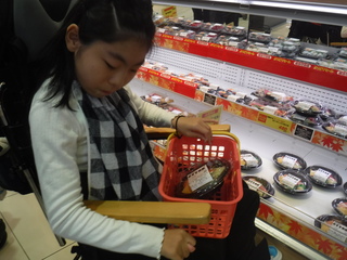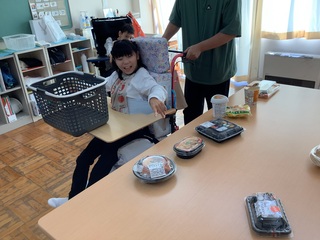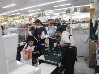 ボウリング終了後は、スーパーマーケットSANWAへ行きました。買い物かごを持つ、商品を取る(見つける)、会計をするという手順を守り、買い物をすることができました。