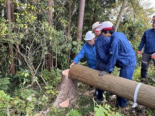 11月12日(水)高等部木工課では、植林体験・伐採見学・丸太切り体験を行いました。