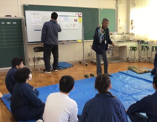 手工芸課では、地域のお飾り作り職人として活躍されている三井先生に御指導頂いて、5年以上になります。今年も、生徒のための稲わらをご自宅の田んぼで栽培して持ってきてくださいました。