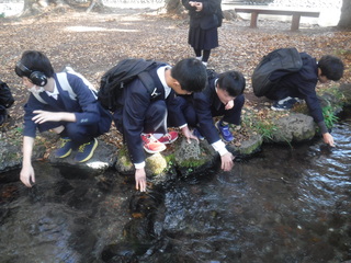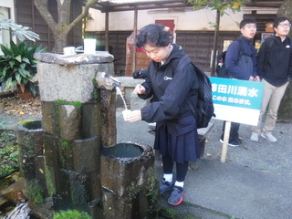校外学習当日、生徒たちからは、湧水に触ると「冷たい!」「水がきれい。」という声が聞こえたり、試飲すると「美味しい。」という声が聞こえたりして、富士山の恵みを実感することができました。