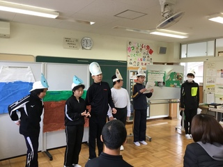 事後学習では、「三島市には、富士山からくる湧水が流れている。」「水がきれいだから鰻も美味しくなる。」など、校外学習で分かったことをグループごとに画用紙にまとめたり、実演したりして発表することができました。
