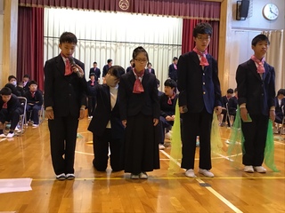 10月の下旬から御特祭に向けての練習が本格的に始まりました。中学部の今年の発表は〈合唱〉『365日の紙飛行機』と〈ボディパーカッション〉『カルメン』です。それぞれ2つのグループに分かれて何度も練習を重ねてきました。徐々に声に強弱をつけられるようになってきたり、体を大きく動かして表現したりすることができるようになってきており生徒たちの気持ちも本番に向けて高まってきています。
