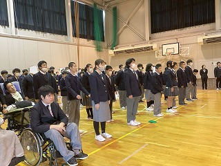 校長先生からは、学校教育目標である「自分らしく のびやかに たくましく」を振り返りながら、3学期は「たくましく」成長してほしいという話がありました。また、生徒一人ひとりがどのような力を発揮してくれるのか、とても楽しみにしているという言葉もありました。