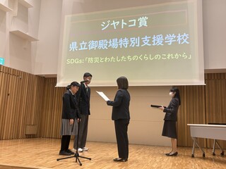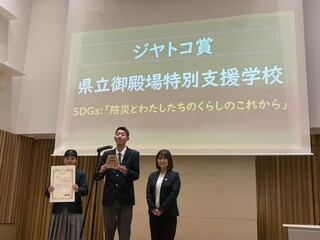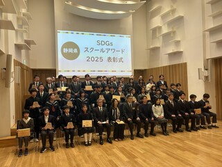 1学期、2学期と「総合的な探究の時間」において取り組んできました『防災とわたしたちのくらしのこれから』がSDGs静岡県スクールアワード2025において企業賞(ジャトコ賞)を受賞しました。