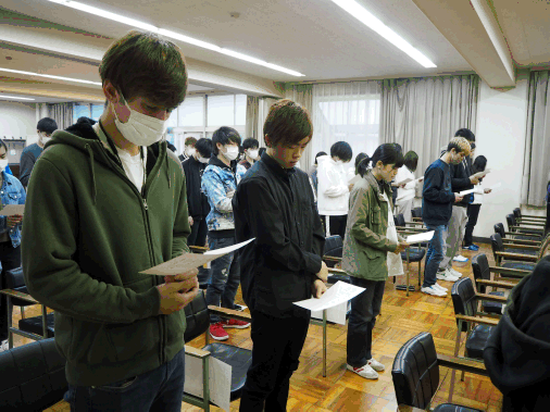 終業式に臨む生徒