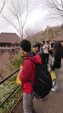京都では、生八つ橋づくり体験をした後に、清水寺に行きました。