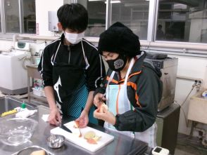 2月13日(木)、1年生の家庭基礎の授業では、調理実習が行われました。グループごとにバナナマフィンを作りました。焼きあがるまでの時間の間に、リンゴをウサギカットに切る実習もしました。生徒は実習を楽しみながら学ぶことができました
