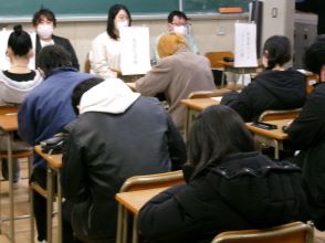 「もし通帳にお金がたくさんあったら働くか?」「職場で分からないことを聞けと言われるが、どのタイミングで聞けばよいか?」などの質問に対して、グループで話し合いをしました。