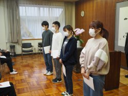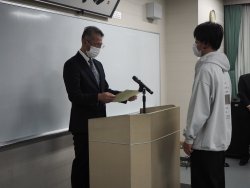 3月20日(月)、表彰式と3学期終業式が行われました。 表彰式では年間の皆勤賞・精勤賞、基礎力テストの優秀者、合同文化祭優秀作品の表彰が行われました。