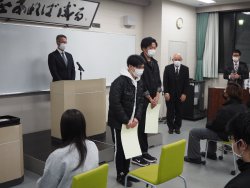 2月27日(月)、4年生の登校日に表彰式が行われました。 全国高等学校定時制通信制教育振興会長賞、榛の木賞、精勤賞(1年間・4年間)、定時制特別賞の表彰が行われました。