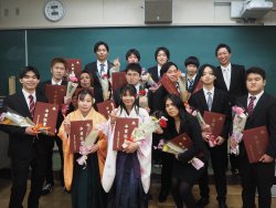 3月20日(月)、終業式に続いて三修制(定通併修により3年で卒業する制度)生徒の卒業式が行われました。 クラスメートや保護者、教職員に囲まれ、温かな雰囲気の中で卒業を祝うことができました。
