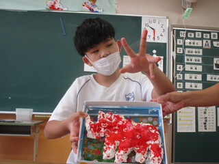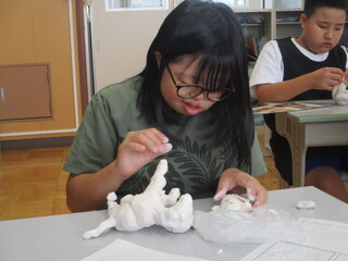 公開日 2025年11月10日 10月の美術は、粘土を用いて、動物をテーマに制作しました。 好きな動物を思い浮かべたり、写真を見たりして作る動物を決めました。立体的になるようにいろいろな方向から見て粘土で成形したり、写真をよく見て粘土をクリア板につけたりして半立体的な作品が出来上がりました。 箱に飾るグループは、背景や箱の装飾も自分で手掛けています!