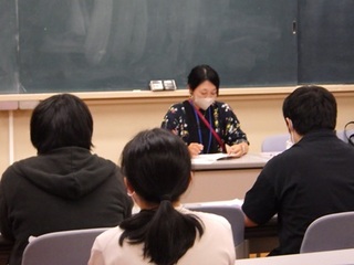 10月17日(金)5・6校時、自治会主催による「卒業生と語る会」を開催しました。 今年度は、平成19年度に卒業された寺田優香さんをお招きしました。