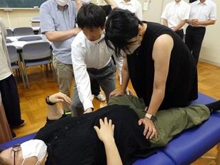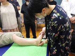寺田さんは卒業後、平成22年 株式会社「優」を設立、デイサービス「優」を開所しました。翌年平成23年に「鹿島整骨院」を開院し、現在に至っています。会の中では、事前に生徒から寄せられた質問に対しての説明や現在の仕事内容の説明をしてくださいました。また、生徒を対象にリフレクソロジーやタイ式マッサージの指導も行ってくださいました。