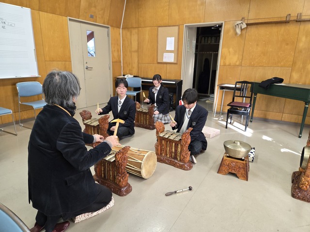 1月13日(火)高大連携事業として、音楽専攻2年生が静岡文化芸術大学・梅田 英春教授によるガムラン講座を受講しました。
