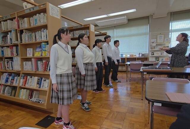お届けしたのは、図書室にジブリの本が置かれているとの事で≪ジブリメドレー≫と、本校校歌を混声3部合唱に編曲してくださった佐藤賢太郎さん作詞・作曲の≪前へ≫です。