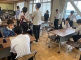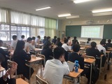 7時間目、理数科2年生は先日の理数科1年保護者会でも説明した理数探究です。本年度は、数学系、情報系、物理系、科学系、生物系と個人またはグループで興味関心に応じて探究を始めています。今日は、暗号の研究や災害のわかりやすい数値化、通電の効率、指紋、ダンゴムシ、メダカの学習能力などなど現段階で出ている様々なテーマについて今後どうするかのディスカッションあるいはテーマ発表会によるダメ出しを行っています。先は長いですが頑張りましょう。