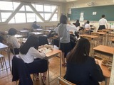 3年生は記述模試です。今年からの取り組みで、会場は浜南を使用しますが、監督は外部講師、受験教室も普段のホームルームとは異なり、受験タイプ別に別教室で開始時間も異なります。ちょうど毎年1月に本校を会場に行っている「大学入学共通テスト」と同じ形式です。普段との違いに戸惑う3年生もいましたが、これで経験値を上げることが出来るのではないかと思います。
